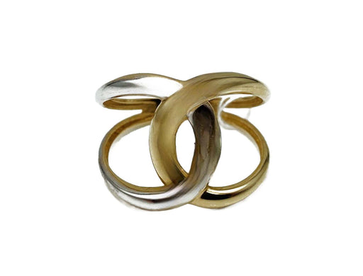 Dieser breite schlichte Ring in Weiß- und Gelbgold lebt durch seine Verflechtung der zweifarbigen Stränge im Chanel-Stil und deren hochglanzpoliert...