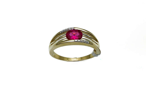 Im Stil eines klassischen Cocktail-Ringes präsentiert sich dieser Ring aus 333/- Gelbgold. Der oval-geschliffene synthetische Rubin ist mit Krappen...