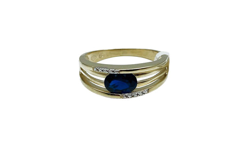 Echter Safir in Ovalschliff und einer Größe von 6 x 4 mm in seiner typischen blauen Farbgebung. Die Grundschiene aus polierten 585/- Gelbgold fasst...