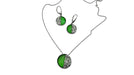 Dieses bezaubernde Collier aus 925/- rhodiniertem Silber erfreut einerseits durch den Karibischen Bernstein in seinem leuchtendem Grün andererseits durch die fein texturierten Gingkoblätter. Der Anhänger mit einem Durchmesser von 21,8 mm verbirgt die Aufnahme für die feine Rundankerkette, die 45 cm lang ist und mit einem Karabiner schließt. Mit passenden Ohrhängern kann zum Set ergänzt werden.