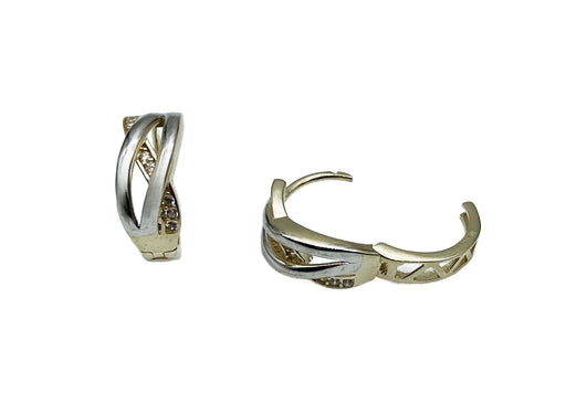 Diese Creole aus 333/- Gelbgold besteht aus 3 ineinander gewobenen Strängen. Zwei sind hochglanzpoliert und im dritten sind Zirkonia fein paveegefa...