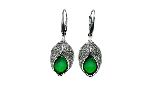 Ohrhänger mit grünem Bernstein Blätterranke | Silber