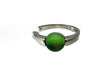 Schlicht und klassisch gestaltet ist dieser 925/- Silberring mit einem cabochongeschliffenen Karibischen Bernstein im Durchmesser von 8 mm. Die 3,5 mm breite polierte Schiene führt den Blick zum leuchten grünen Bernstein, der dadurch gekonnt in Szene gesetzt wird.