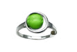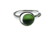 Ein 8 mm großer echt Karibischer Bernstein bezaubert hier durch sein intensiv leuchtendes Grün. Der cabochongeschliffenen Stein wird eingerahmt von einer Korona aus poliertem und anlaufgeschütztem 925/- Silber mit einem Gesamtdurchmesser von 11,5 mm. Der Schmuck kann zum Set ergänzt werden durch Ohrschmuck und Collier im gleichen Design.